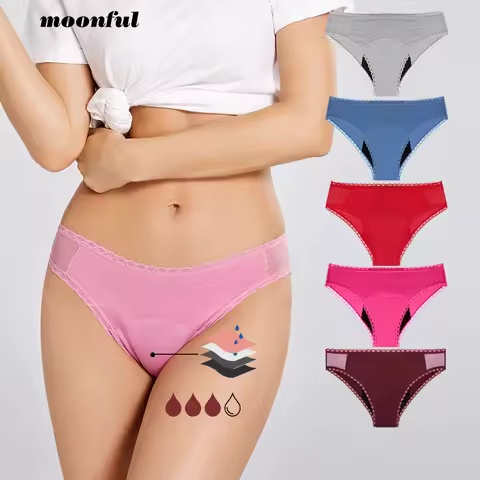 Bamboo Menstrual Panties for Women 4 Layer Absorbent Period Underwear Lace Bikini Leak Proof Culotte Menstruelle