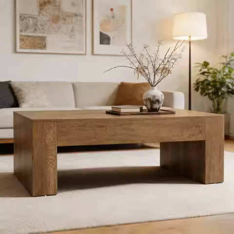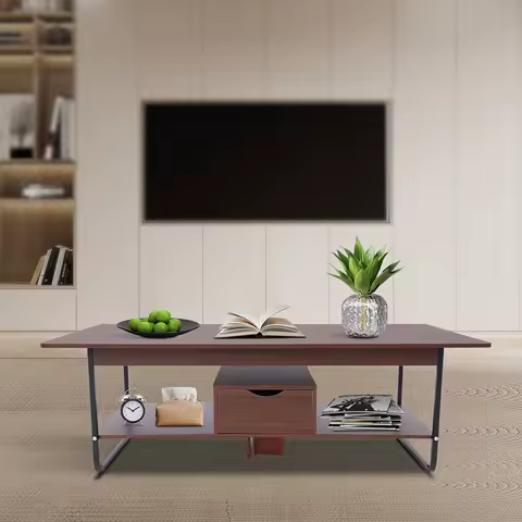 small rectangular table can be used as a coffee table or a side table in a living room.
